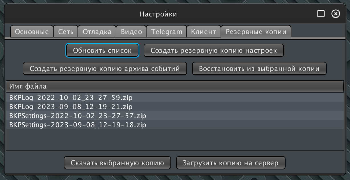Нажмите на кнопку "Создать резервную копию архива событий" - система инициирует процесс создания резервной копии.